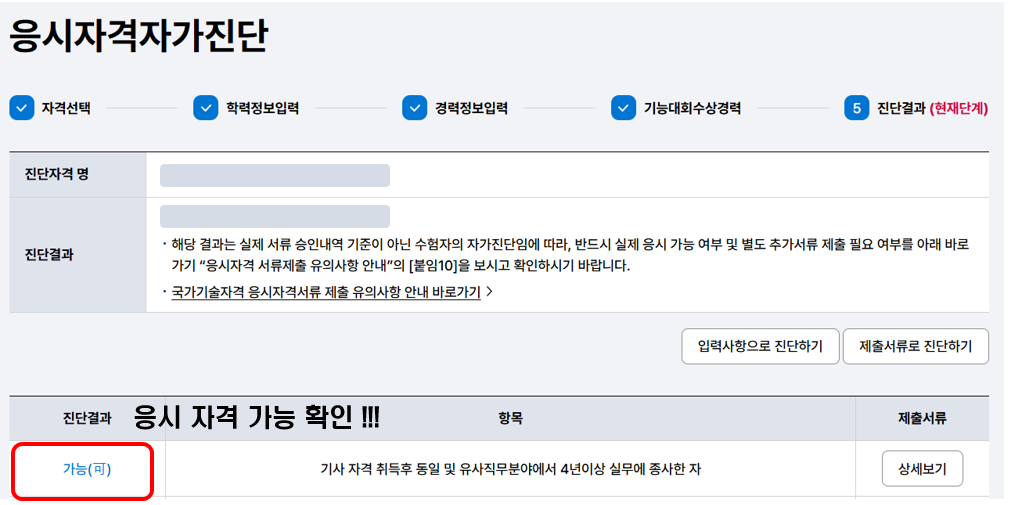 4) 응시자격이 가능한지 불가능한지 진단할 수 있습니다.