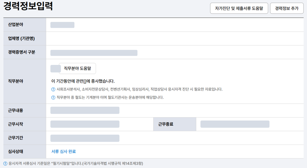 3) 경력이 있는 경우 경력정보까지 입력하면