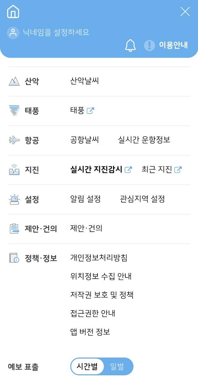 저도 사용하고 있는 앱중에 하나인데요. 지역별로 실시간 날씨정보 뿐만 아니라 전국 산악 날씨, 공항 날씨, 그리고 공항별 운항정보도 간편하게 확인할 수 있습니다. 알림설정까지 해주면 간편하게 특보를 접할 수 있습니다. 실제로 어플을 들어가보면 디자인이나 메뉴 설정 등 깔끔합니다. 특히 등산 자주가시거나, 여행계획 있으신 분들은 사용해보시면 좋을 것 같아요.
