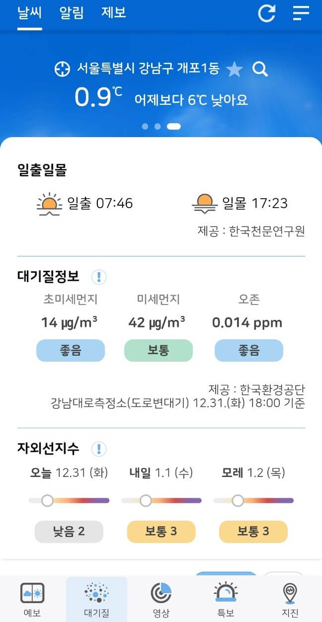 그리고 미세먼지 농도도 확인할 수 있습니다.