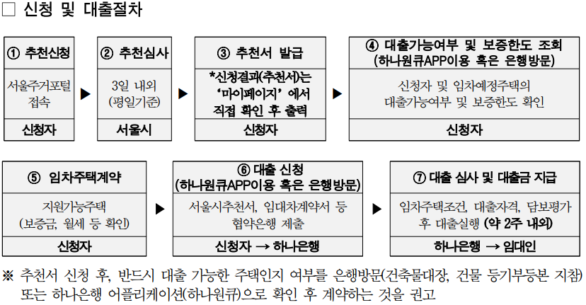 3) 지원 내용 : 서울시 지원 금리는 대출금의 연 2% (대출금리 - 서울시 지원금리)