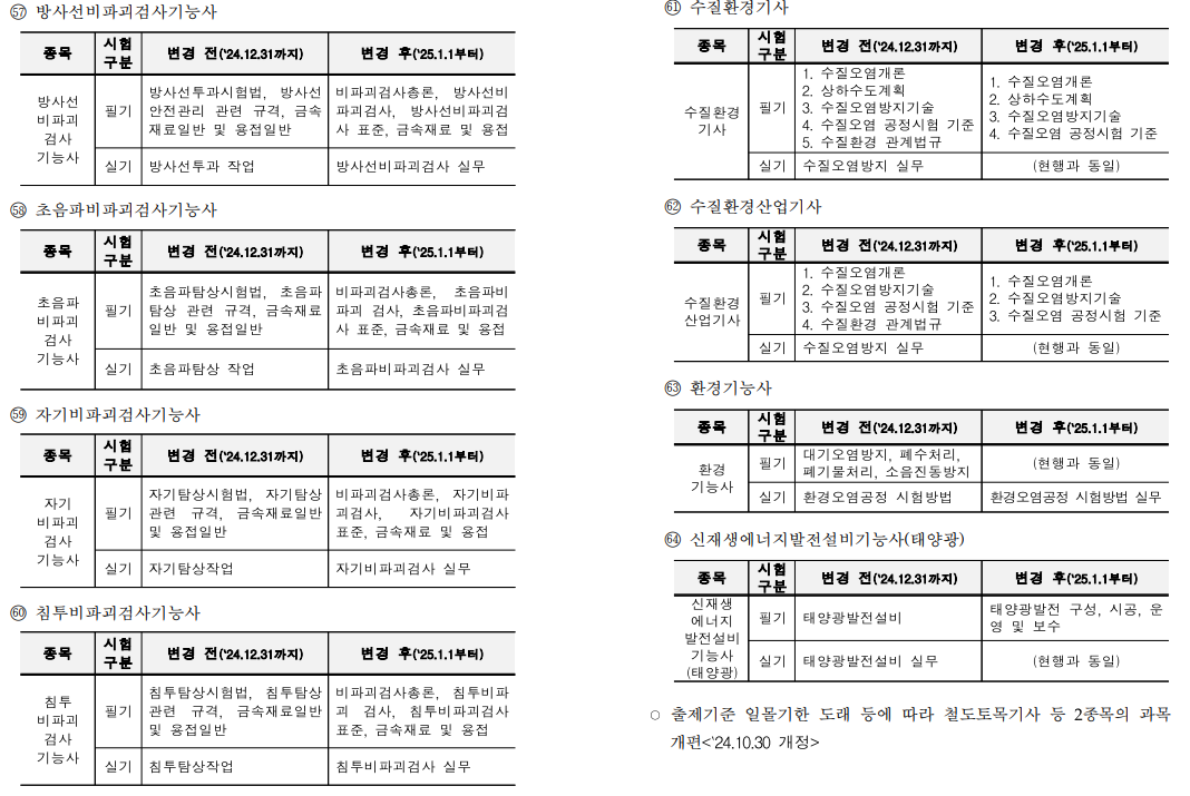 - 취지는 NCS기반 자격개편에 따라 시험 과목이 변경