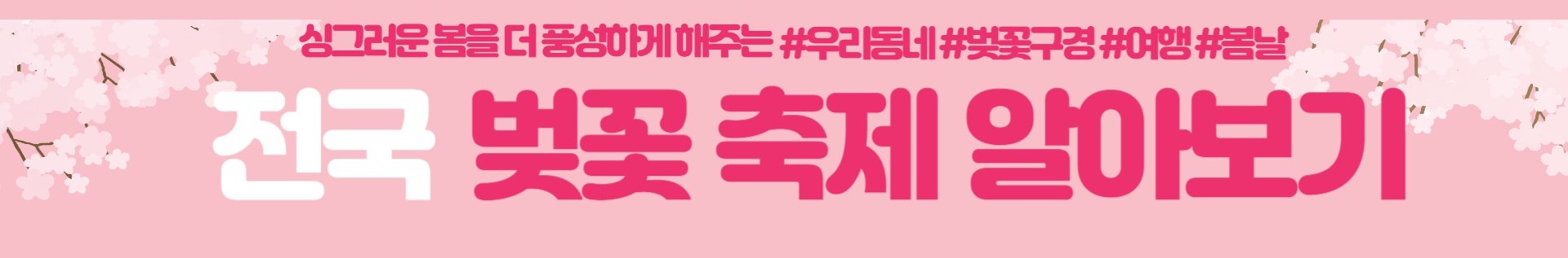 올해 봄, 벚꽃과 함께 더 풍족하고 꽉 찬 추억을 만들고 싶다면 전국에서 열리는 벚꽃 축제 일정 꼭 확인해보세요.