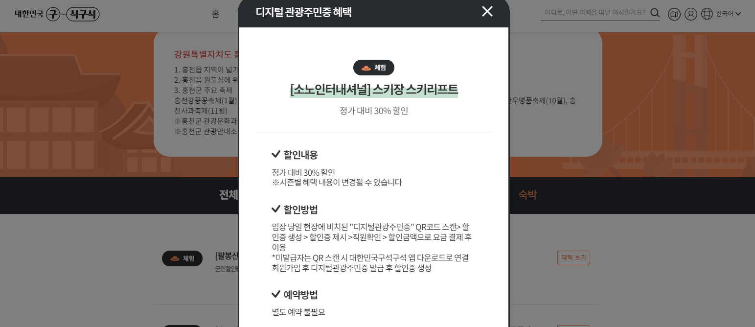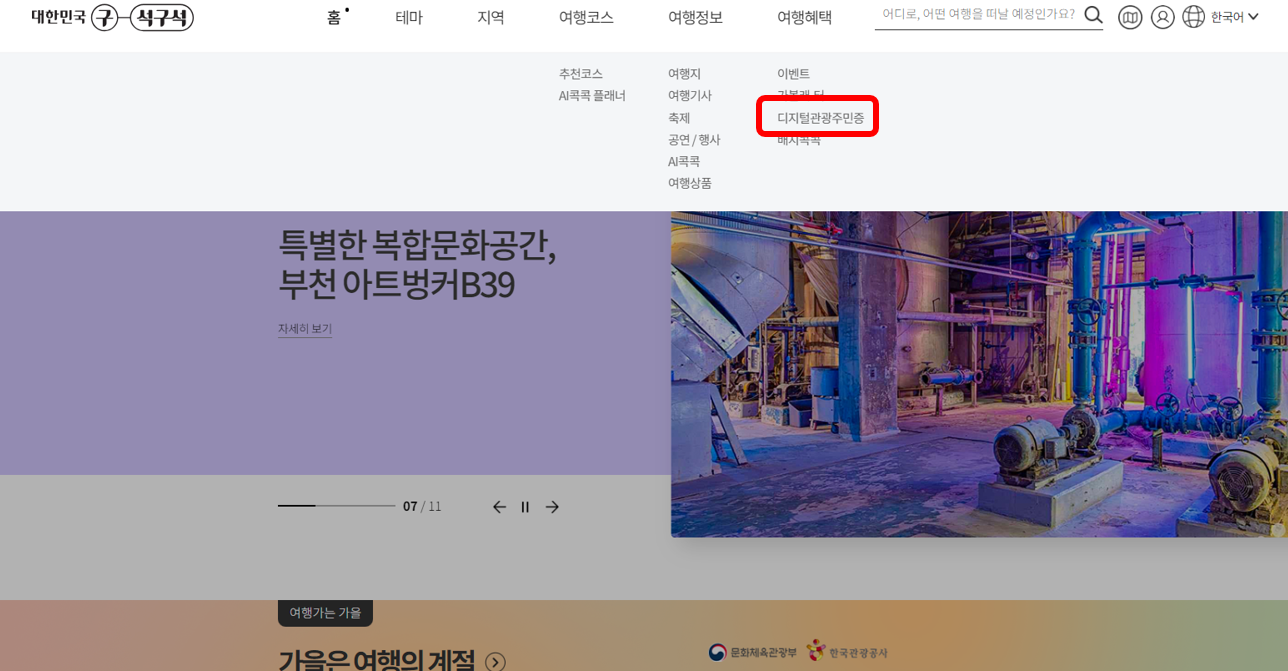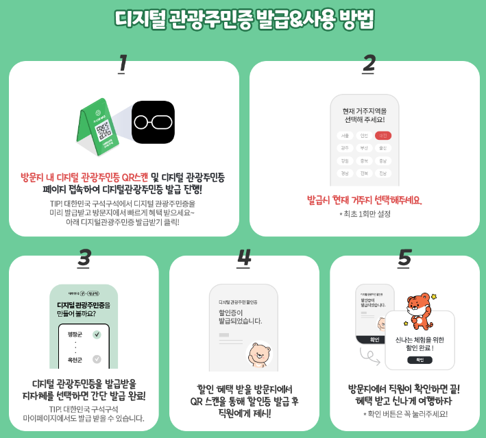 여행혜택 ▶ 디지털관광주민증 ▶ 지역별 할인 혜택 확인하기 ▶ 할인권 발급